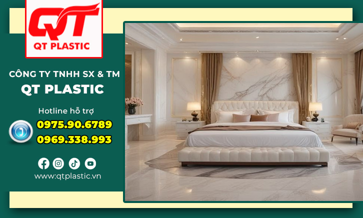 QT Plastic tự hào là nhà máy sản xuất và kho sỉ tấm nhựa Pvc vân đá tại Hưng Yên, nơi hội tụ chất lượng – uy tín – giá tận gốc xưởng. Với hệ thống nhà xưởng hiện đại, quy mô kho bãi lớn, đội ngũ kỹ thuật viên lành nghề và chính sách giá linh hoạt, QT Plastic đã trở thành đối tác tin cậy của hàng nghìn đại lý, công trình và nhà phân phối trên toàn quốc. Mỗi sản phẩm Pvc vân đá tại QT Plastic không chỉ mang vẻ đẹp tinh tế, sang trọng mà còn đảm bảo độ bền, chống ẩm, chống mối mọt vượt trội – giải pháp ốp tường hoàn hảo cho không gian hiện đại.