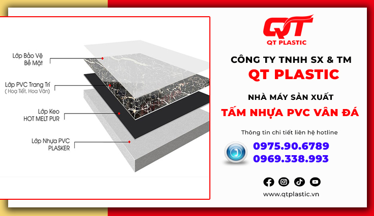 Cấu tạo tấm nhựa Pvc vân đá QT Plastic