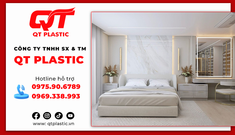 Phòng ngủ không chỉ là nơi nghỉ ngơi mà còn là ốc đảo riêng tư, nơi bạn tái tạo năng lượng sau một ngày dài. QT Plastic mang đến dòng tấm nhựa Pvc vân đá – vật liệu đột phá giúp biến đổi bức tường phòng ngủ thành kiệt tác thẩm mỹ, vừa giữ được vẻ đẹp tinh tế của đá tự nhiên, vừa mang lại cảm giác ấm áp, gần gũi. Với công nghệ sản xuất tiên tiến, sản phẩm không chỉ bền vững mà còn dễ dàng thích nghi với mọi phong cách thiết kế. Đồng thời, QT Plastic đang mở rộng mạng lưới bằng cách tìm kiếm đối tác phân phối đáng tin cậy, mang cơ hội kinh doanh tiềm năng cho các doanh nghiệp trong lĩnh vực nội thất và vật liệu xây dựng. Không chỉ dừng lại ở việc cung cấp vật liệu, chúng tôi mở ra cơ hội hợp tác thịnh vượng cho các nhà phân phối và mang đến giải pháp thay áo cho không gian nghỉ ngơi thêm phần tinh tế.
