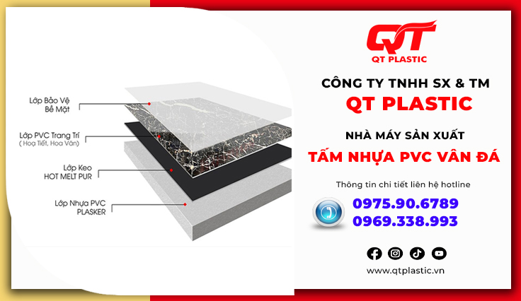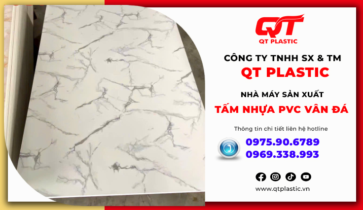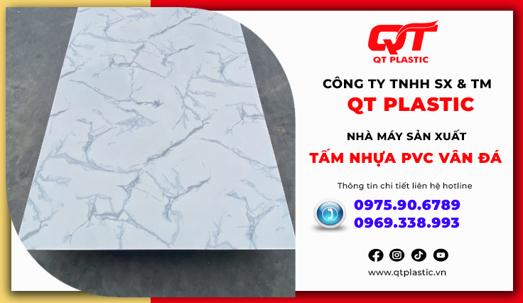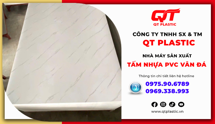 QT Plastic tự hào là đơn vị tiên phong trong lĩnh vực sản xuất tấm nhựa Pvc vân đá chất lượng cao tại Hà Nội. Chúng tôi không chỉ cung cấp vật liệu; chúng tôi kiến tạo giải pháp trang trí nội thất đột phá, mang vẻ đẹp tinh tế của đá tự nhiên vào mọi không gian sống và làm việc. Tại QT Plastic, chúng tôi không ngừng nghiên cứu để mang đến bộ sưu tập vân đá phong phú và chân thực nhất. Với công nghệ sản xuất hiện đại, QT Plastic mang đến cho khách hàng những sản phẩm chất lượng vượt trội – giá trị bền lâu – thẩm mỹ tinh tế, đáp ứng nhu cầu từ các công trình dân dụng đến dự án lớn trên toàn quốc.