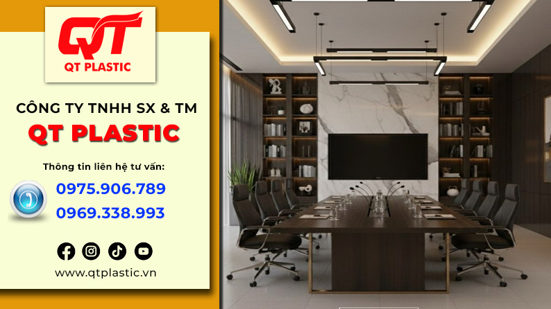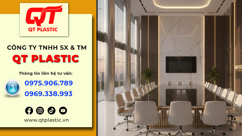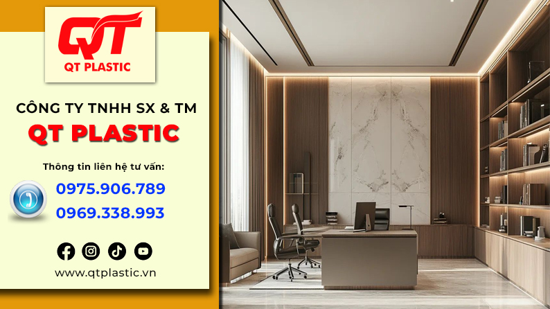 Bạn đang tìm kiếm một giải pháp ốp tường văn phòng vừa toát lên vẻ chuyên nghiệp, sang trọng, vừa bền bỉ trước khí hậu Ninh Bình ẩm ướt, lại giúp tiết kiệm thời gian thi công và chi phí dài hạn? QT Plastic – với nhà máy sản xuất tấm nhựa Pvc vân đá tại Ninh Bình – chính là lựa chọn thông minh nhất cho doanh nghiệp bạn. Để đạt được điều đó, việc lựa chọn vật liệu nội thất đóng vai trò vô cùng quan trọng. Trong những năm gần đây, tấm nhựa Pvc vân đá nổi lên như một giải pháp thay thế hoàn hảo cho đá tự nhiên, gỗ hay các vật liệu truyền thống nhờ vào tính thẩm mỹ cao, chi phí hợp lý và khả năng thi công linh hoạt. Nắm bắt xu hướng đó, QT Plastic – nhà máy sản xuất tấm nhựa Pvc vân đá tại Ninh Bình đã không ngừng đầu tư công nghệ, mở rộng quy mô sản xuất nhằm cung cấp ra thị trường những sản phẩm chất lượng cao, đáp ứng đa dạng nhu cầu từ dân dụng đến thương mại.
