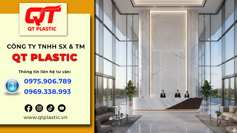 QT Plastic đã và đang trở thành một trong những nhà máy sản xuất tấm nhựa Pvc vân đá hàng đầu tại Hưng Yên cung cấp khu vực Ninh Bình. Với định hướng phát triển bền vững, công nghệ tiên tiến và đội ngũ nhân sự giàu kinh nghiệm, QT Plastic mang đến cho thị trường những sản phẩm chất lượng vượt trội, đáp ứng đa dạng nhu cầu từ thi công nội thất đến các công trình kiến trúc hiện đại.