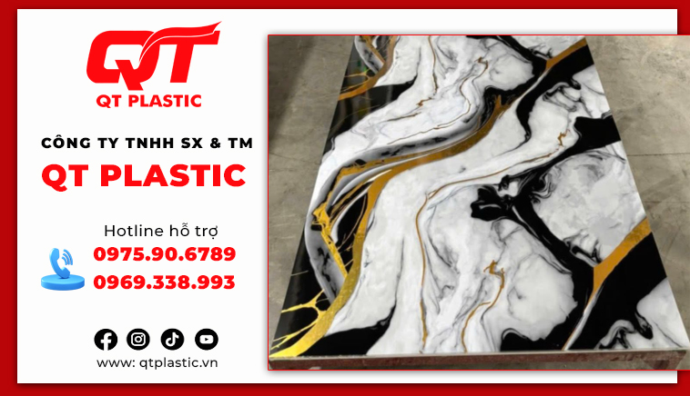 QT Plastic không phải là một cái tên xa lạ trong thị trường nhựa kỹ thuật và vật liệu trang trí. Với sự đầu tư nghiêm túc vào hệ thống dây chuyền sản xuất hiện đại, chúng tôi đã tạo ra dòng sản phẩm tấm nhựa Pvc vân đá mang thương hiệu riêng, đáp ứng đầy đủ các tiêu chuẩn khắt khe nhất về độ bền và thẩm mỹ.