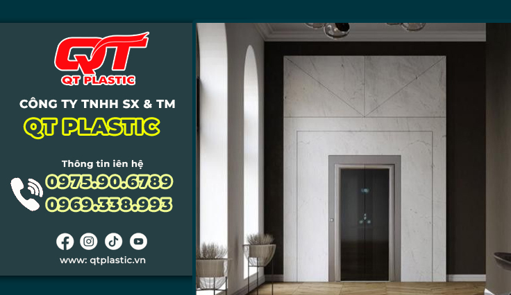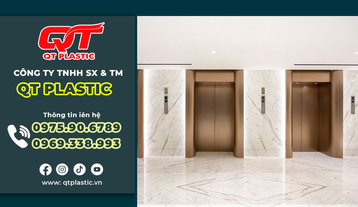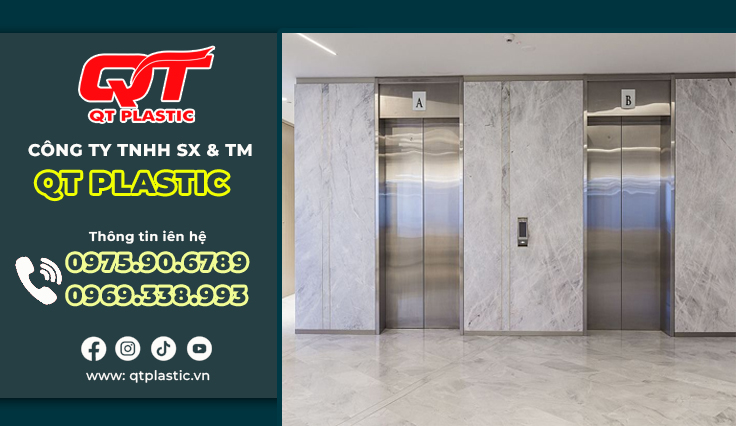 Trong những năm gần đây, tấm nhựa Pvc vân đá đã trở thành lựa chọn hàng đầu cho các công trình hiện đại nhờ sự sang trọng, bền bỉ và dễ thi công. Tâm điểm của xu hướng năm 2025 là ứng dụng tấm nhựa Pvc vân đá là giải pháp tối ưu cho các công trình hiện đại, đặc biệt là ốp thang máy. Không chỉ mang lại vẻ đẹp sang trọng như đá tự nhiên, Pvc vân đá còn sở hữu độ bền cao, dễ thi công và tiết kiệm chi phí. Sản phẩm của QT Plastic được sản xuất trên dây chuyền công nghệ tiên tiến, đảm bảo độ bền, khả năng chống nước, chống nấm mốc và đặc biệt là khả năng chống cháy lan – yếu tố then chốt cho mọi công trình. Hãy để QT Plastic giúp bạn sở hữu không gian thang máy ấn tượng, hiện đại và đẳng cấp nhất!