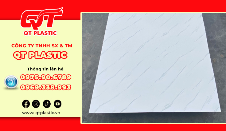 Trong bối cảnh nhu cầu vật liệu nội thất ngày càng đa dạng và khắt khe, QT Plastic tiên phong trong lĩnh vực sản xuất tấm nhựa Pvc vân đá với công nghệ in hiện đại, chất lượng vượt trội và hệ thống kho hàng quy mô lớn, sẵn sàng đáp ứng nhanh chóng cho thị trường Việt Nam. Điểm mạnh nổi bật của QT Plastic: