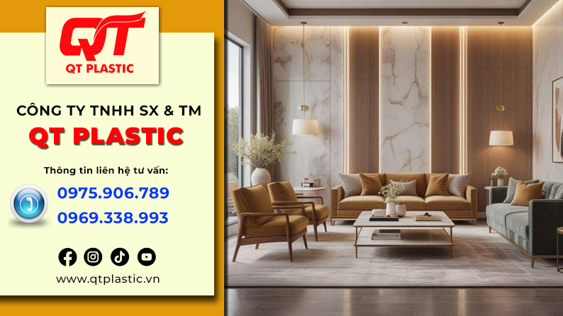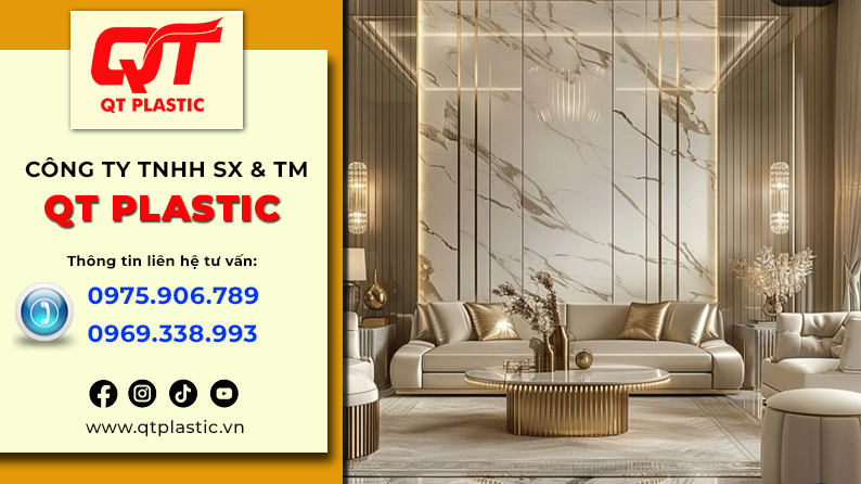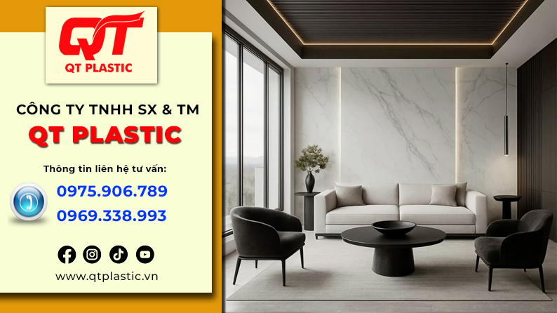 Bạn đang tìm kiếm giải pháp biến bức tường sau sofa thành điểm nhấn nghệ thuật, sang trọng mà vẫn tiết kiệm chi phí và dễ dàng thi công? Trong đó, tấm nhựa Pvc vân đá nổi lên như một giải pháp thay thế hoàn hảo cho đá tự nhiên nhờ vẻ đẹp sang trọng, trọng lượng nhẹ và thi công linh hoạt. Nắm bắt xu hướng đó, QT Plastic đã đầu tư mạnh mẽ vào hệ thống sản xuất và phân phối tấm nhựa Pvc vân đá chất lượng cao, cung ứng trực tiếp từ nhà máy đến đại lý và khách hàng trên toàn quốc. Với cam kết “Nhập trực tiếp từ nhà máy QT Plastic”, chúng tôi mang đến cho bạn tấm nhựa giả đá chất lượng cao nhất, giá thành cạnh tranh nhất, không qua trung gian. Hãy cùng khám phá tại sao đây lại là lựa chọn hàng đầu cho xu hướng ốp vách sofa hiện nay.